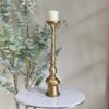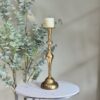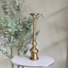 Candelabro alto de hierro con acabado dorado vintage.